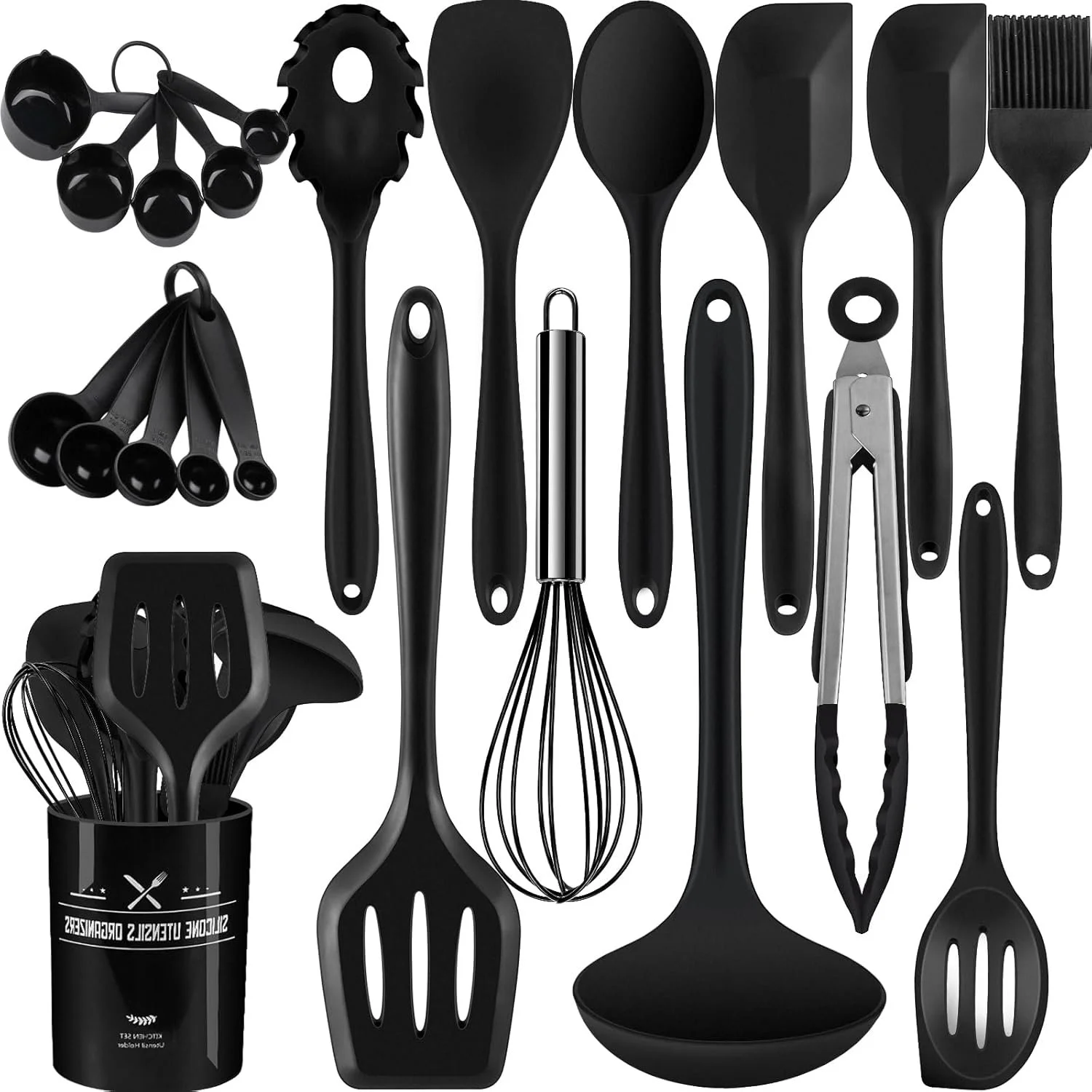 Wildone Küchenutensilien Set, 22-teilig, Voll Silikon, hitzebeständig, antihaftbeschichtet, BPA-frei, Pfannenwender, Löffel, Zange, Schneebesen, Kochgeschirr
