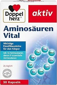 Doppelherz Vital Amino Acids - 12 Protein Building Blocks, Including All 9 Essential Amino Acids, for Athletes and Physically Active - 30 Capsules
